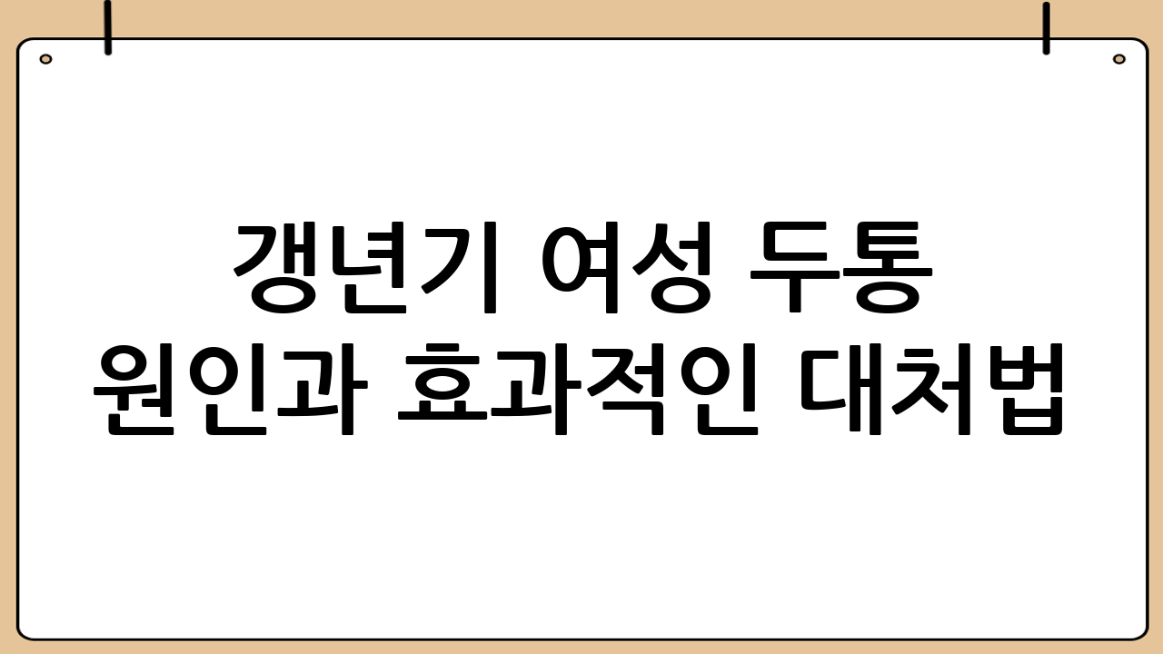 - 호르몬 변화: 에스트로겐 감소는 뇌의 화학적 균형을 깨뜨려 두통을 유발합니다.