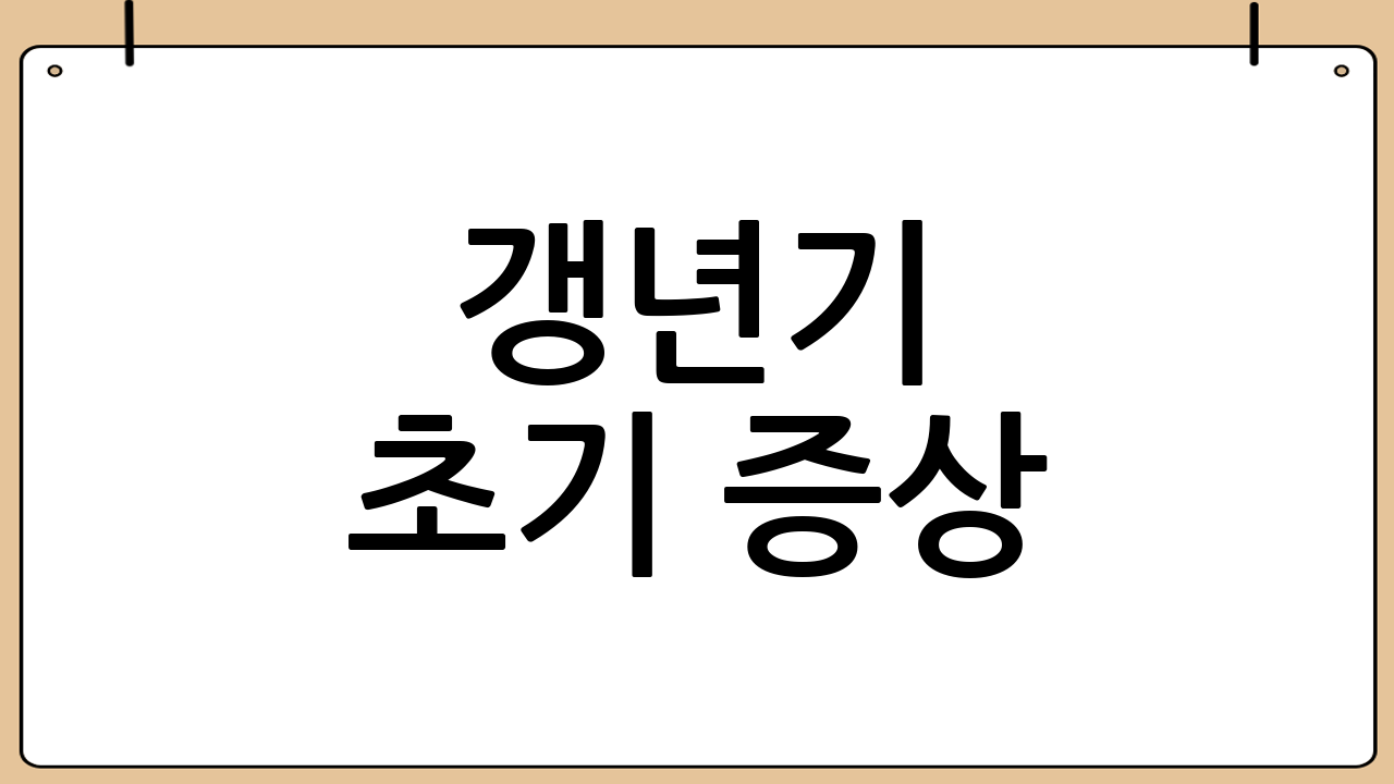 갱년기 초기 증상은 매우 다양하며, 개인마다 다르게 나타날 수 있습니다. 대표적인 증상은 다음과 같습니다.
