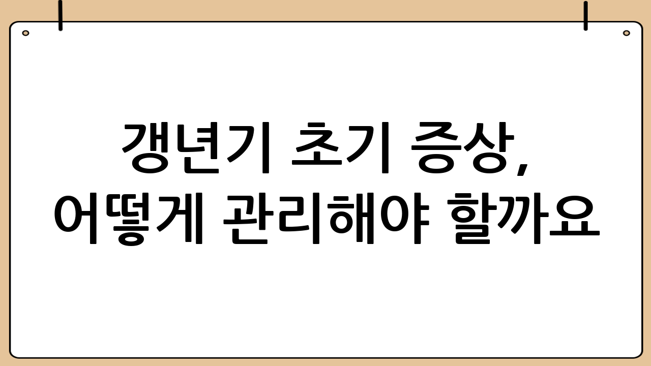 갱년기 초기 증상, 어떻게 관리해야 할까요?
