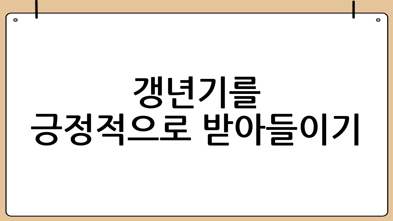 갱년기는 여성의 삶에서 자연스러운 과정입니다. 갱년기 초기 증상에 대처하는 것도 중요하지만, 긍정적인 마음으로 갱년기를 받아들이는 것이 더욱 중요합니다. 갱년기는 새로운 시작을 의미하기도 합니다. 자신을 위한 시간을 갖고, 새로운 취미를 개발하거나, 봉사 활동에 참여하는 등 적극적인 삶을 통해 갱년기를 더욱 풍요롭게 만들 수 있습니다.