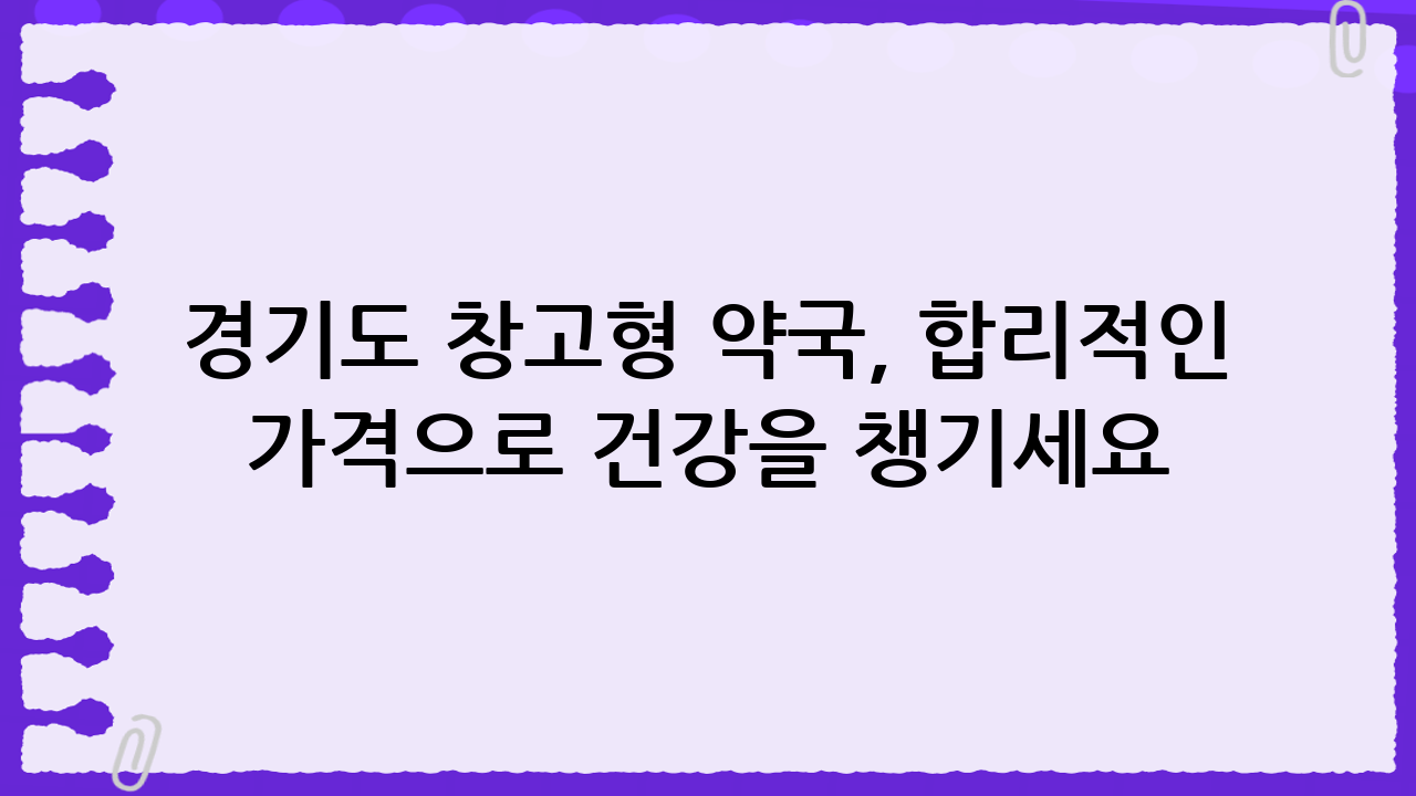 경기도 창고형 약국, 합리적인 가격으로 건강을 챙기세요!