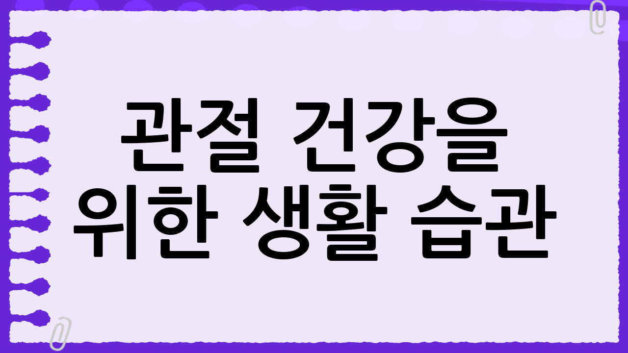 관절염에 좋은 음식을 섭취하는 것 외에도 건강한 생활 습관을 유지하는 것이 중요합니다. 규칙적인 운동은 관절을 강화하고 유연성을 유지하는 데 도움이 됩니다. 적절한 체중 유지는 관절에 가해지는 부담을 줄여주어 통증을 완화하는 데 도움이 됩니다. 금연과 절주는 염증을 줄이고 전반적인 건강 상태를 개선하는 데 중요합니다.