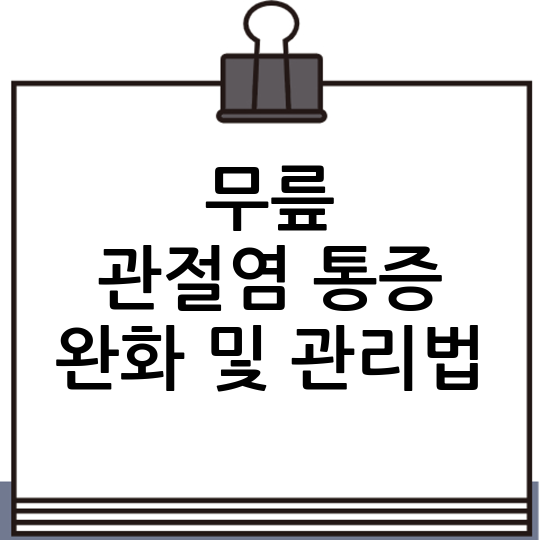 - 체중 감량: 과체중은 무릎에 가해지는 부담을 증가시키므로, 체중 감량을 통해 통증을 완화할 수 있습니다.