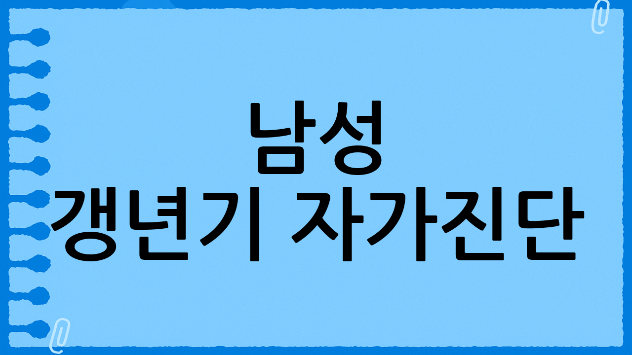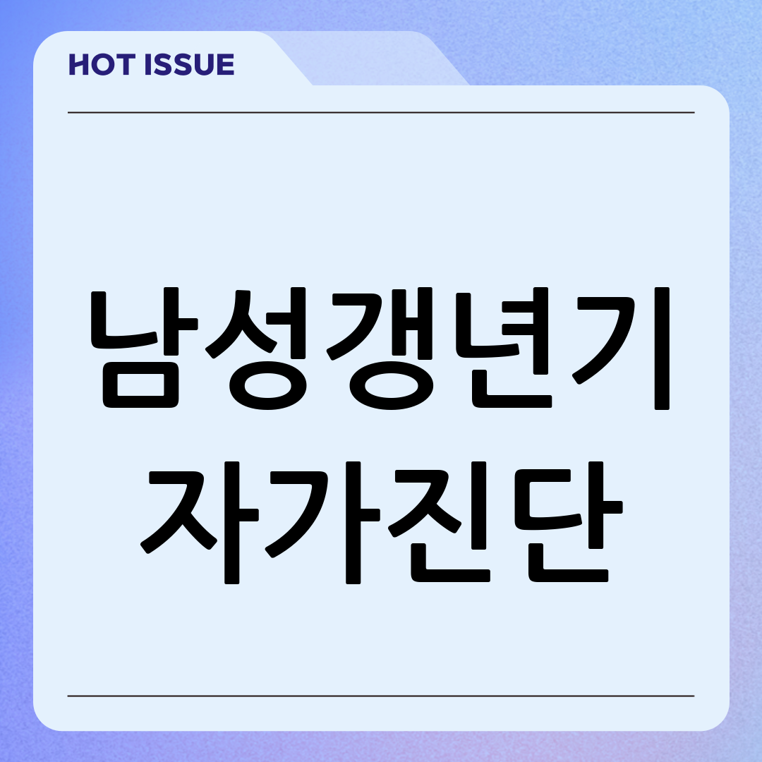 남성 갱년기는 누구에게나 찾아올 수 있는 자연스러운 현상입니다. 하지만 방치하면 삶의 질을 저하시키고 다양한 질병의 위험을 증가시킬 수 있습니다. 남성 갱년기 자가진단을 통해 증상을 조기에 인지하고, 적극적인 관리와 치료를 통해 건강하고 활기찬 중년을 보내시기 바랍니다. 궁금한 점이 있다면 언제든지 전문가와 상담하여 자신에게 맞는 관리 방법을 찾아보세요.