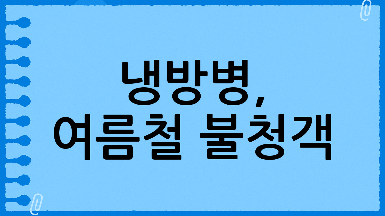 여름철 무더위를 피하고자 에어컨을 켜는 것은 당연하지만, 과도한 냉방은 오히려 건강을 해칠 수 있습니다. 바로 냉방병 때문입니다. 냉방병은 단순히 춥다고 느끼는 것을 넘어 다양한 증상을 유발하며, 일상생활에 불편함을 초래할 수 있습니다. 이번 포스팅에서는 냉방병의 증상과 원인, 예방법에 대해 자세히 알아보고, 건강하게 여름을 나는 방법에 대해 이야기해보겠습니다.