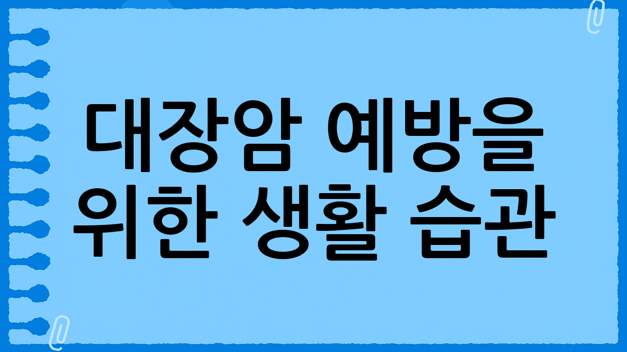 대장암 검사뿐만 아니라, 건강한 생활 습관을 유지하는 것도 대장암 예방에 매우 중요합니다.
