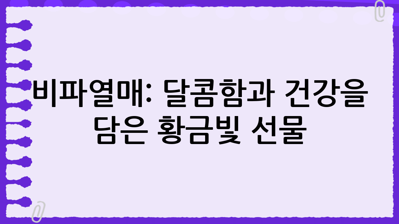 비파열매는 맛과 영양을 모두 갖춘 훌륭한 과일입니다. 다양한 효능을 가지고 있으며, 다양한 요리에 활용할 수 있습니다. 오늘 소개해 드린 정보를 바탕으로 비파열매를 더욱 맛있고 건강하게 즐기시길 바랍니다. 비파열매의 달콤함과 건강함을 느껴보세요!