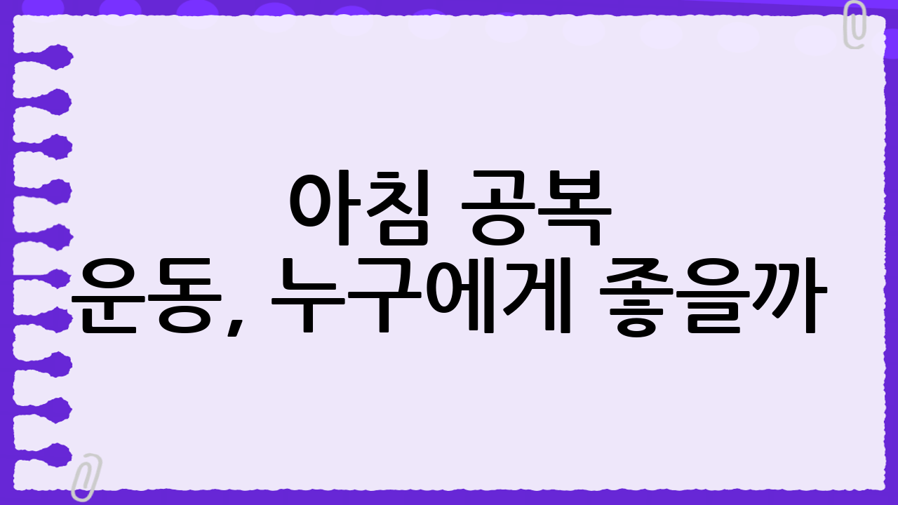 아침 공복 운동, 누구에게 좋을까? 맞춤형 가이드