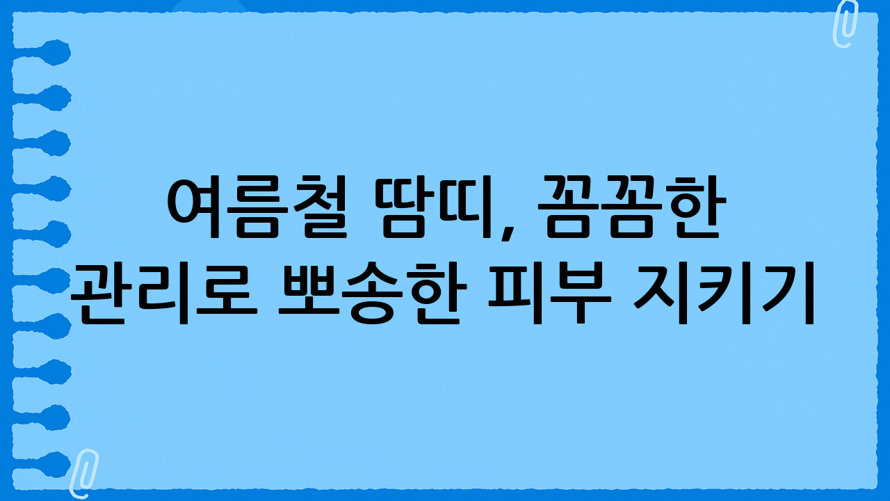 | 청결 유지 | 땀을 자주 닦아주고, 미지근한 물로 샤워하여 피부를 청결하게 유지해야 합니다. |