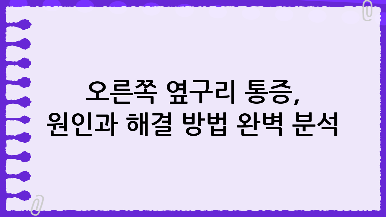 일상생활 중 갑작스럽게 발생하는 오른쪽 옆구리 통증은 많은 사람들을 당황하게 만듭니다. 단순한 근육통부터 심각한 질환의 신호일 수 있기 때문에 그 원인을 정확히 파악하고 적절한 대처를 하는 것이 중요합니다. 이 글에서는 오른쪽 옆구리 통증의 다양한 원인과 증상, 그리고 효과적인 해결 방법에 대해 자세히 알아보겠습니다.