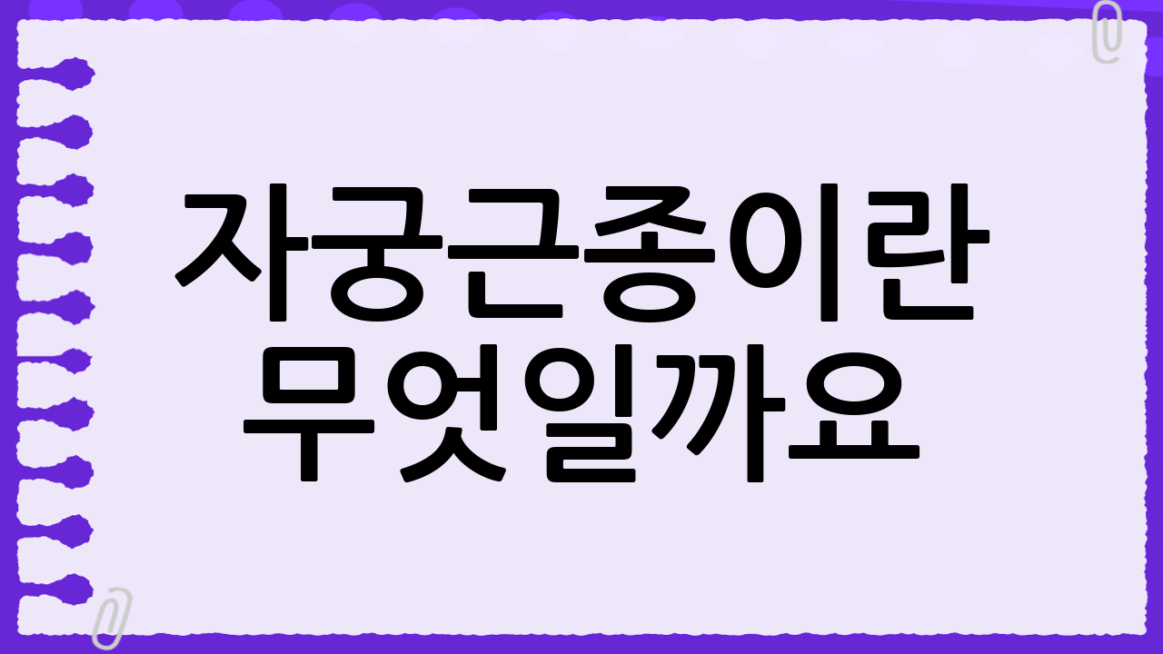 자궁근종은 여성에게 흔하게 발생하는 질환이지만, 초기에는 뚜렷한 증상이 없어 모르고 지나치는 경우가 많습니다. 하지만 방치하면 불임, 난임, 심한 생리통 등 다양한 문제를 일으킬 수 있으므로 조기 발견과 치료가 매우 중요합니다. 이번 포스팅에서는 자궁근종 초기증상과 자가진단 방법, 그리고 예방 및 관리법에 대해 자세히 알아보겠습니다.