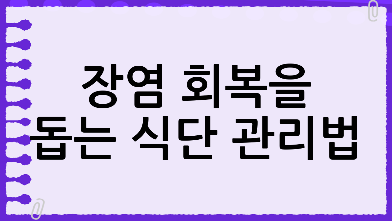 장염에 좋은 음식을 섭취하는 것만큼 중요한 것이 올바른 식단 관리입니다. 다음은 장염 회복을 돕는 식단 관리법입니다.