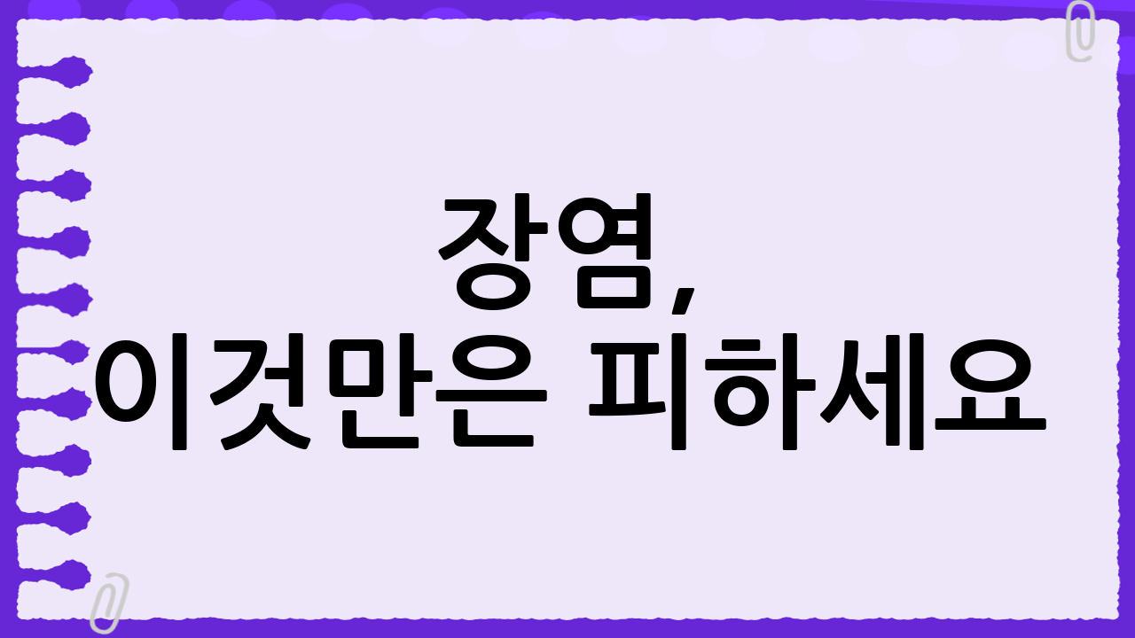 - 알코올: 술은 장 점막을 자극하고 염증을 악화시킬 수 있으므로, 장염 증상이 있을 때는 금주해야 합니다.