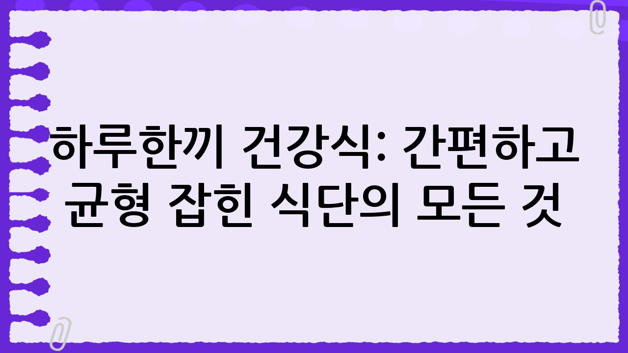 하루한끼 건강식: 간편하고 균형 잡힌 식단의 모든 것