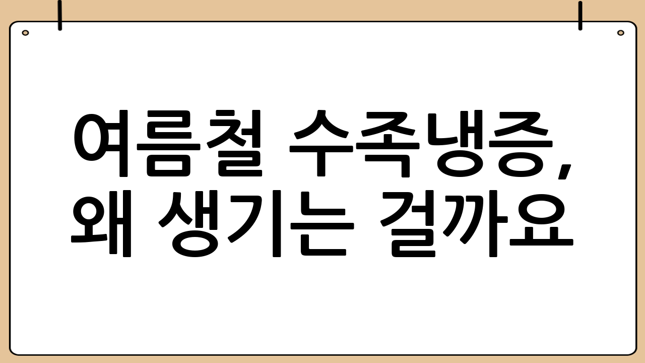 여름에도 손발이 차가운 수족냉증으로 고생하는 분들이 많습니다. 더운 날씨에도 불구하고 손발이 시리고 저린 증상은 일상생활에 불편함을 초래할 수 있습니다. 단순히 '체질' 문제라고 넘기기에는 삶의 질을 저하시키는 요인이 될 수 있습니다. 여름철 수족냉증은 겨울철과 마찬가지로 혈액순환 장애가 주요 원인입니다.