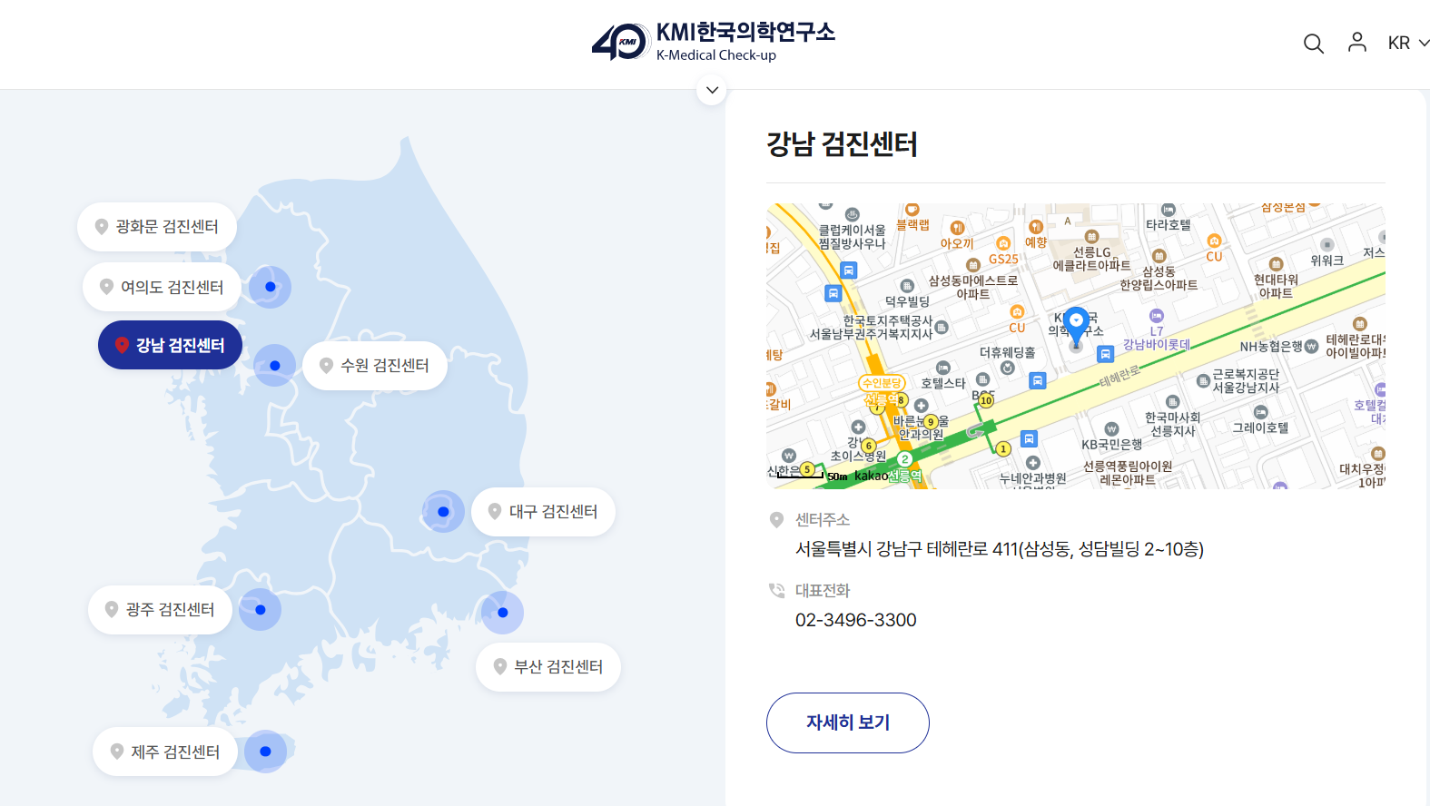 | 강남 | KMI 한국의학연구소 강남센터 | 직장인·기업 검진 특화 |
