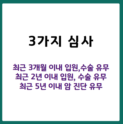 일반적인 보험 심사보다 훨씬 간단한 다음 3가지 질문만 확인합니다: