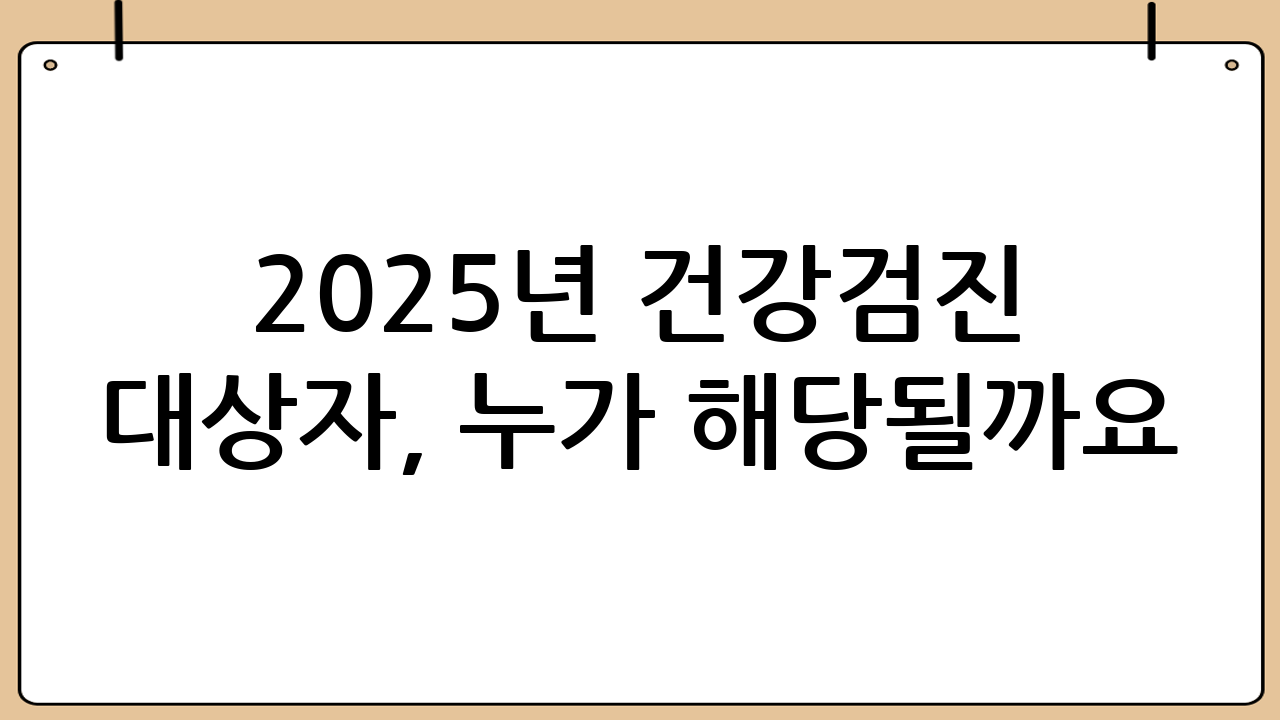 건강검진은 국민건강보험 가입자라면 누구나 받을 수 있는 혜택입니다. 2025년에는 만 20세 이상인 국민건강보험 가입자 중, 짝수년도에 출생한 분들이 일반 건강검진 대상자가 됩니다. 또한, 만 40세 이상인 분들은 암 검진 대상에도 포함될 수 있습니다.